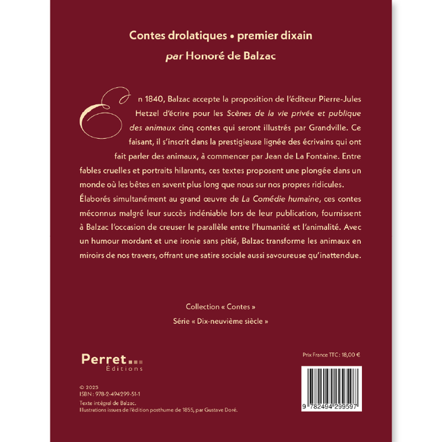 Dans ce Premier Dixain, le maître du réalisme se fait conteur malicieux et impudent. Il nous entraîne dans les ruelles mal famées de la Touraine, dans les alcôves des courtisanes, dans des monastères peu chastes et dans des châteaux où l’amour se conjugue avec la tromperie. Les maris cocus, les amants ridicules et les clercs débauchés s’y bousculent, sous le regard complice de Gustave Doré, dont les illustrations de 1855 – tantôt licencieuses, tantôt grotesques – soulignent avec brio la verve paillarde de Balzac.