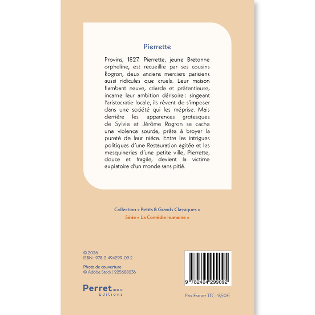 Provins, 1827. Pierrette, jeune Bretonne orpheline, est recueillie par ses cousins Rogron, deux anciens merciers parisiens aussi ridicules que cruels. Leur maison flambant neuve, criarde et prétentieuse, incarne leur ambition dérisoire : singeant l’aristocratie locale, ils rêvent de s’imposer dans une société qui les méprise. Mais derrière les apparences grotesques de Sylvie et Jérôme Rogron se cache une violence sourde, prête à broyer la pureté de leur nièce. Entre les intrigues politiques d’une Restauration agitée et les mesquineries d’une petite ville, Pierrette, douce et fragile, devient la victime expiatoire d’un monde sans pitié.